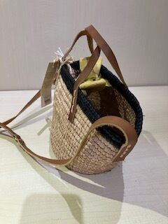 組成: ラフィア 牛革 中ポケット部分:100% コットン ハンドル+ベルト:牛革