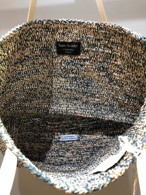 Sans Arcidet(サンアルシデ)BEBY BAG S Handle:C Col.The,Natural/Jean Mixed ラフィアトートバッグ 白エナメルハンドル マダガスカル製